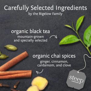Our mission was to find the most flavorful organic ginger and spices to marry with our specially selected. mountain grown black tea. Steep a cup to enjoy an authentic chai experience. USDA Organic and Non GMO Project Verified.