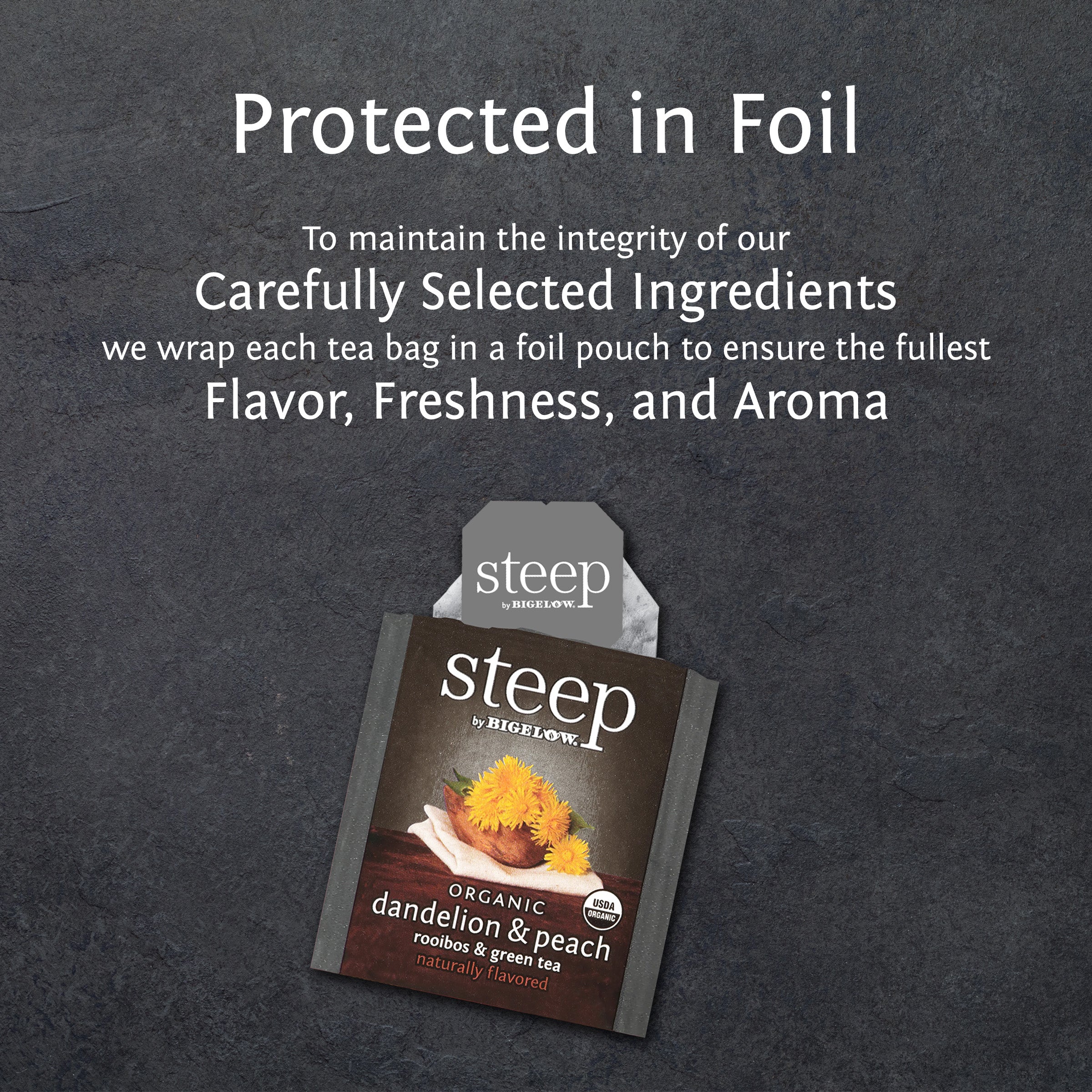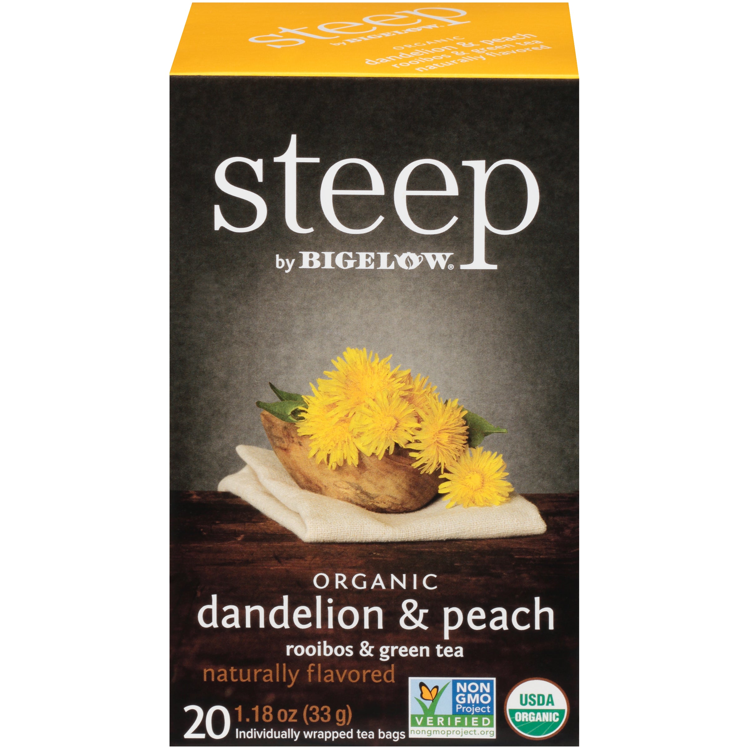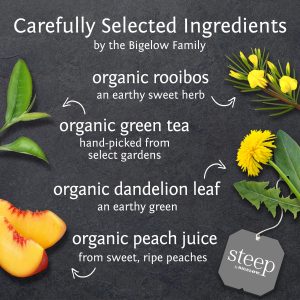 Organic dandelion leaves carefully blended with our delicate green tea and finished with a sweet flavor of peach